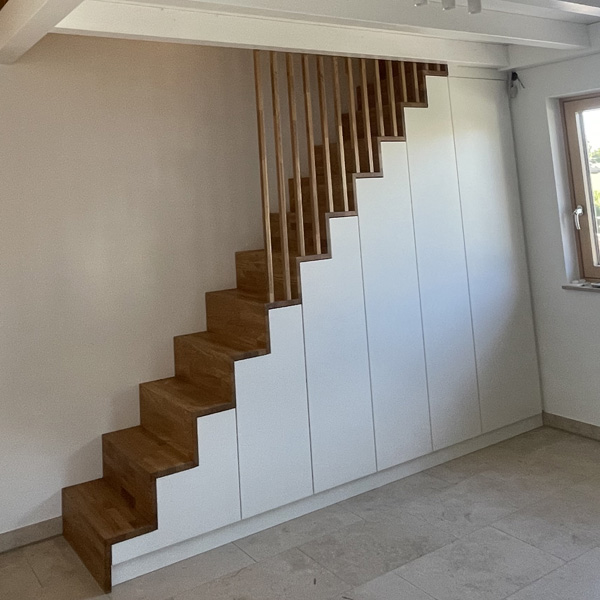 Schicke Treppen und Geländer ganz nach Ihrem Bedarf und Wunsch! Treppen aus Holz gehören zu unseren Standard-Aufträgen bei der Schreinerei Bernrieder, egal ob Neubau oder Renovierung/Sanierung. Massivholztreppen, Raumspartreppen oder Wendeltreppen: Bei uns laufen Sie sicher treppauf und treppab. Besonders edel wirken auch z.B. freischwebende Treppen. Und selbstverständlich verbauen wir Ihnen auch Kinder- oder Haustiersicherungen aus Holz!